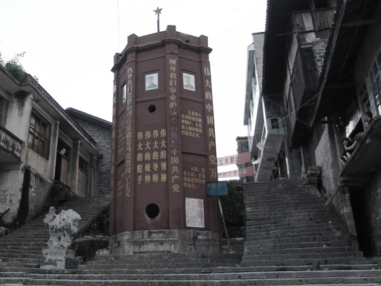 清嘉慶七年(1802),這里建成了一座石堡城,設(shè)東西南北4門,門樓上各有4座炮臺(tái),420個(gè)垛口。抗日戰(zhàn)爭(zhēng)時(shí)期,蔣介石的殘兵敗獎(jiǎng)經(jīng)此地逃往四川。解放戰(zhàn)爭(zhēng)時(shí)期,劉鄧大軍也是從這里推進(jìn)大西南。解放后,城墻城門雖被毀壞,但翠翠島、吊腳樓、石板街依然保存完整。