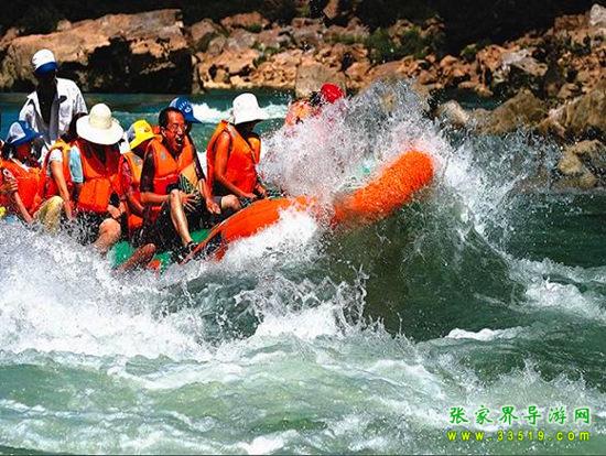 茅巖河漂流段是大庸城西20公里青魚(yú)潭往北一段。茅巖河雖灘險(xiǎn)流急,但河床坡度小,水位落差不大;險(xiǎn)灘較短(一般僅20余米長(zhǎng)),而險(xiǎn)灘與險(xiǎn)灘間的距離卻較長(zhǎng)(一般均逾千米),故浪濤適中,漂流有驚無(wú)險(xiǎn)。茅巖河主要景點(diǎn)有:血門溝、洞子坊、茅巖灘、夾兒溝、溫塘溫泉、麻陽(yáng)古渡、茅巖河峽、水洞子瀑布等。沿河兩岸青山綠水、風(fēng)光如畫,故又稱“百里畫廊”。