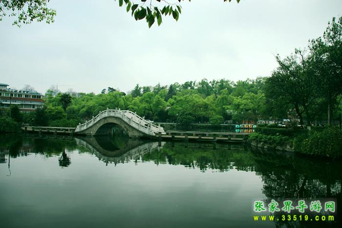 岳屏山下的原江西會館舊址,改建成為博物館,內(nèi)有王夫子專館和古物商店,龍年龍展,更是令人矚目。和博物館為鄰的是花圃,四時八節(jié),有花卉幽蘭供人觀賞。同博物館只有一條馬路之隔的人工湖,是在大灣塘的基礎(chǔ)上疏鑿而成的,有一潭名云水池,繞池有一條環(huán)行小路,北有湖心亭,亭和湖心島之間有仿頤和園玉帶橋相聯(lián),人們可以在湖島上戲游和小憩。過曲橋、繞回廊,便是類似西湖平湖秋月形的亭榭,上有吊腳茶亭,亭上有楹聯(lián):"云岫蒼??叭?a class="insidelink" href="http://m.shengyuwood.com/Scenic/ZJJJQ/09291321189.html" title="畫">畫,水波蕩漾自成文.此聯(lián)深入淺出,有雅俗共賞之妙。"