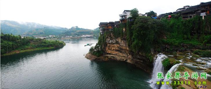 【芙蓉鎮(zhèn)】,該鎮(zhèn)原叫【王村】,因劉曉慶、姜文在此拍攝《芙蓉鎮(zhèn)》電影而享譽中外。芙蓉鎮(zhèn)是典型的湘西邊陲小鎮(zhèn)的形象,青石板、吊腳樓,集中體現(xiàn)了湘西土家族民居的特點。