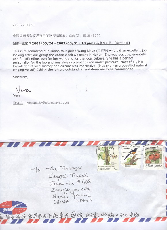 本公司導游,“王莉坤”由于帶團期間出色的講解能力和高尚的人格魅力,贏得了游客們的高度評價。特發(fā)表揚信如下: