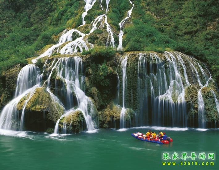 如果說賀龍故居顯得嚴(yán)肅了些,那茅巖河寫意多了。在茅巖河平湖游,聽得最多的便是土家族皇帝覃垕的故事。坐在游輪上,土家妹子用甜美的聲音講著覃垕在茅巖河留下的種種蹤跡。左邊陡峭石壁上的洞是覃垕洞,下側(cè)那石頭城垛是覃垕炮臺(tái)。右邊細(xì)密的小瀑布長(zhǎng)得像馬的鬃毛,那是覃垕被朱元璋扒皮死后,他的戰(zhàn)馬變的,應(yīng)該是想留在這里,守候覃垕。還有那洞口的桿子,被說成是覃垕的晾衣桿。有人想爬上去探個(gè)究竟,臨到桿子處突然電閃雷鳴,那里就成了一個(gè)謎。其實(shí)如果不說那些故事,低頭探水,抬頭賞山,那意境也很到位。